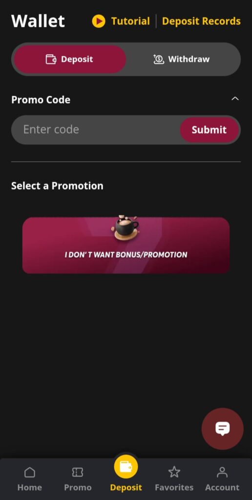 - Cryptocurrency: Use Bitcoin or other supported cryptocurrencies for instant deposits.