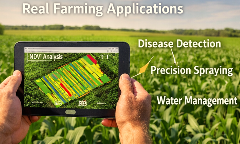 Collected data is processed using specialized software to produce maps that show crop stress, water distribution, and pest or disease hotspots. This allows farmers to make informed decisions for fertilization, irrigation, or pest management.